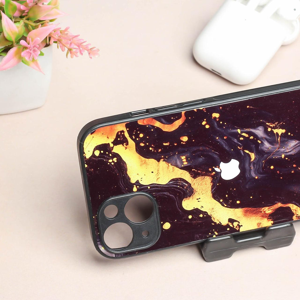 Black Gold Blaze metal back case for Apple Iphone 15